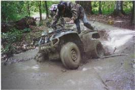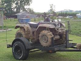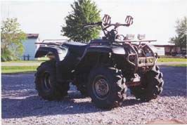 When I bought the bike back in 1996, the guy was selling for the sole reason that the new grizzly (600cc at the time) was coming out and he wanted the biggest he could have. The only modifications to the bike at the time we 25" Interco TSL/ATV tires on it. Within the next month of having the bike, I had 26" Vampires all around, HighLifter lift kit and a 1500# Superwinch mounted on the front bumper. I choose to go with skinny front and wide rear combo for the general trail riding we do here in the southern gulf coast of Louisiana. |